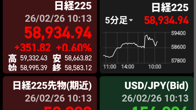 こんにちは😁 本日の日経平均です(10時時点)↓ 高市内閣が昨日確立したことにより買い場になったのか...