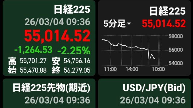 こんにちは👋🏻 本日の日経平均です(9時時点)↓ 今日はとんでもない下落相場でした。11時時点では-...