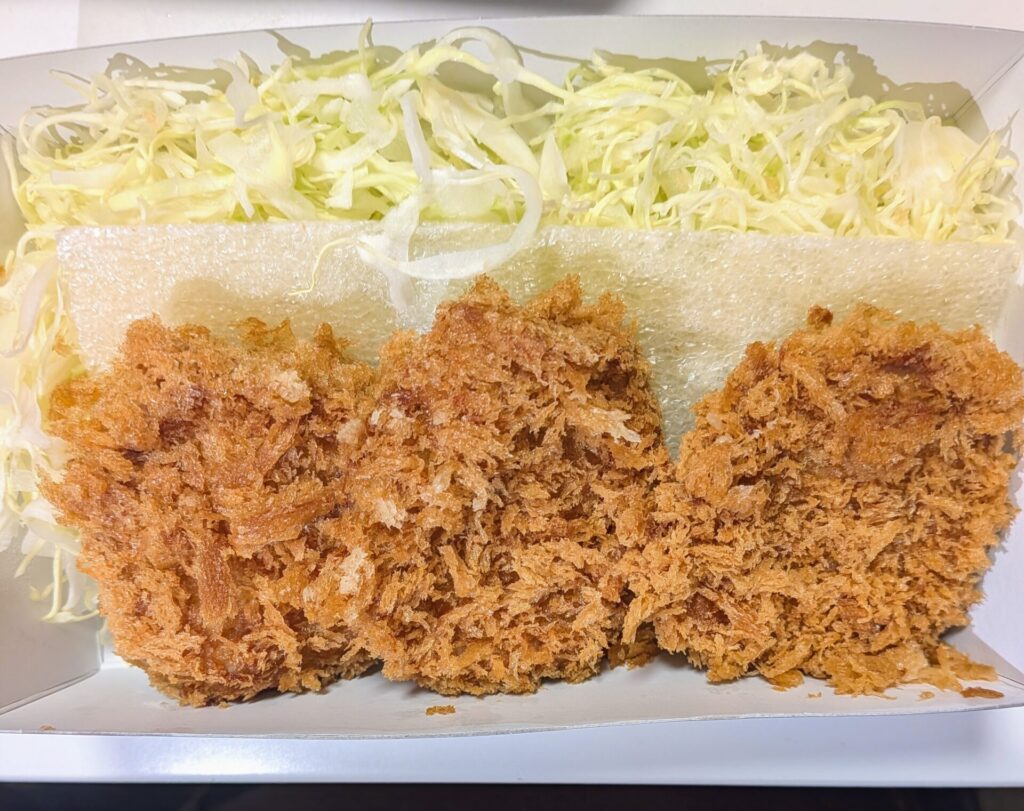味の方は流石とんかつ専門店、衣はお持ち帰りなのにサクサクで、ヒレカツなのであっさりしてそうなイメージですが、脂も乗っててジューシーでした!(*’ω’*)
