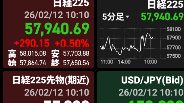 こんにちは👋🏻 本日の日経平均です(10時時点)↓ 本日の相場も上昇相場です。一時58000円年高高...