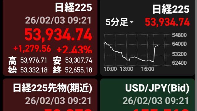 こんにちは👍 本日の日経平均です(9時半時点)↓ 今日は気持ちがいいくらい大きく上げる相場でした。+...