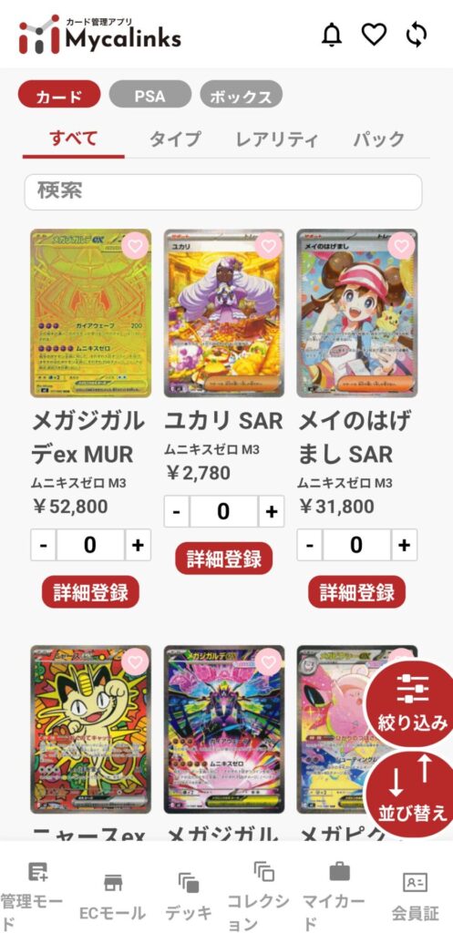 カードで資産運用してる方がいたら販売価格になっていて少し高い値段が表示されていますがすごく分かりやすくなっています。