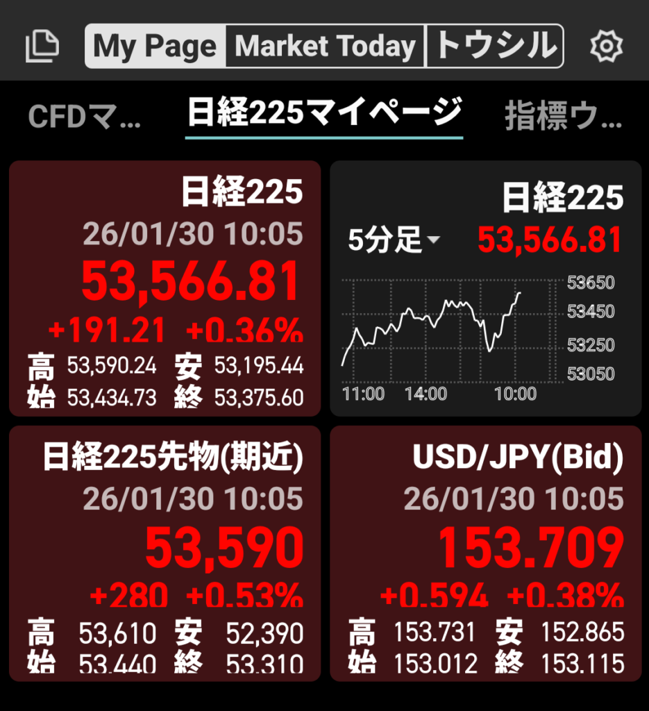 本日の日経平均です(10時時点)↓
