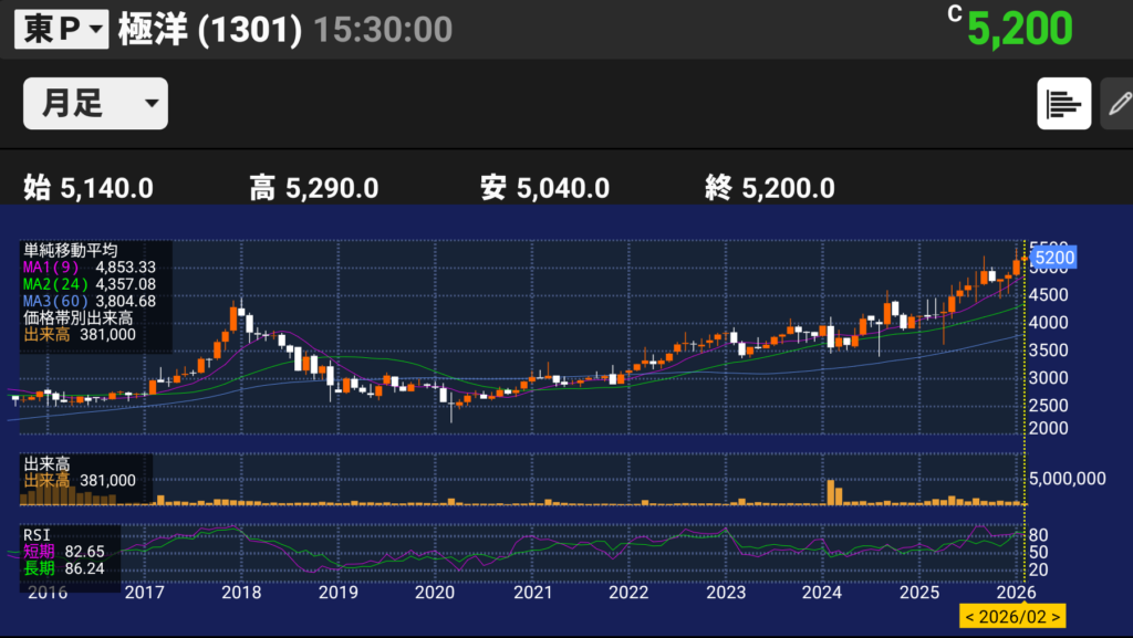コード1301 極洋 東京P 株価5230 水産銘柄