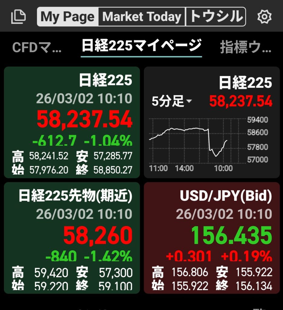 本日の日経平均です(10時時点)↓