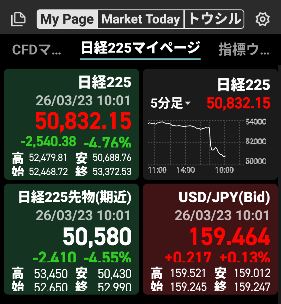 月曜日から最悪な日経平均です💦最近、とにかく上がるときも大きい下がるときも大きいホントに落ち着いてくれ!!!と心の叫びが出てきそうな相場にしか直面しません!