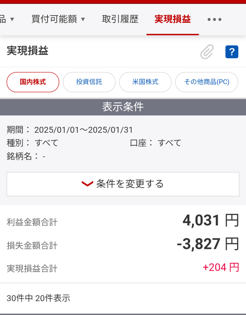 デイトレをやっていたので取引が30件になっています。